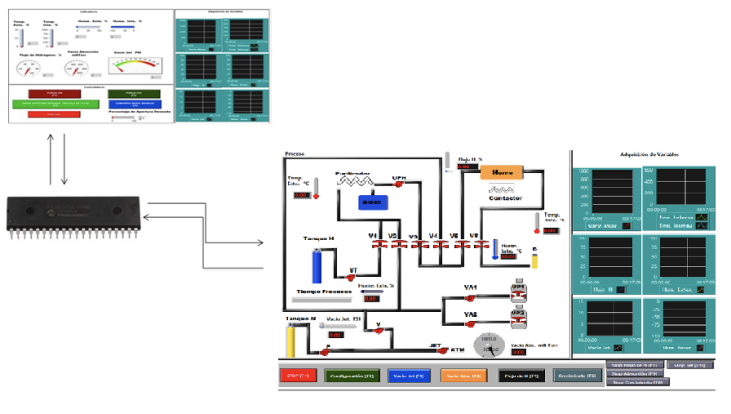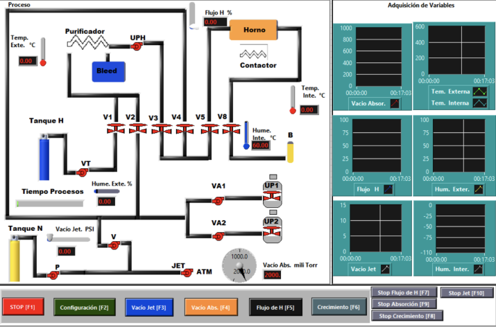 Se diseñó un sistema de control y monitoreo basado en un microcontrolador PIC18F4550 que realiza la comunicación entre un sistema de crecimiento de cristales por epitaxia en fase líquida y una interfaz HMI implementada en LabVIEW [17]. Este dispositivo tiene que ser capaz de garantizar la apertura y cierre de válvulas neumáticas en tiempo real que permita mantener el flujo adecuado de gases en el interior del sistema de crecimiento, permitiendo el desarrollo adecuado de los experimentos para la obtención de los componentes opto-electrónicos que se obtienen en dicho sistema.