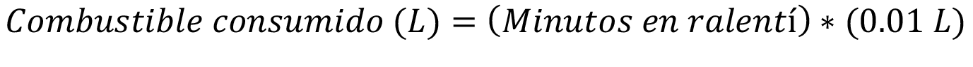 Para la determinación del tiempo en ralentí se realizó la sumatoria de los tiempos en segundos (s), calculando así el tiempo total. Para efectos del uso posterior en las fórmulas, se hizo la conversión del tiempo a minutos aplicando las equivalencias correspondientes.