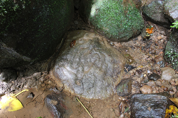 Figura 9. Petrograbado con diseño de meandro, registrado por Gabriela Arroyo, Monumento Nacional Guayabo (Foto: M. Arce, 2017).